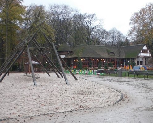 De grote speeltuin ligt in het Nachtegalenpark bij de Melkerij (restaurant) en nabij het openluchtmuseum “Middelheim”. De speeltuin wordt heel druk bezocht door de Antwerpse kinderen en uit de omgeving van Antwerpen.