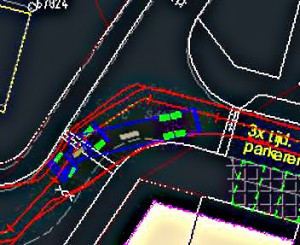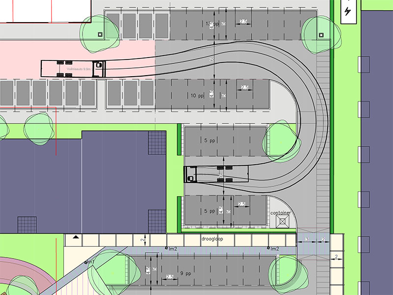 In een ontwerp van een stedelijke omgeving is het belangrijk dat de grote en lange voertuigen die door de straat moeten rijden er wel door kunnen. Door in Autocad in het digitale ontwerp toe-passen van een rijcurve-animatie van voertuigen kan gekeken worden of het past.
