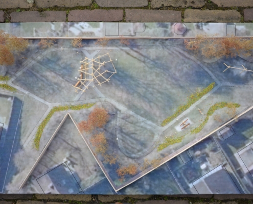 Voordat werd begonnen met ontwerpen is de nabije school bezocht, zijn wensen en meningen gepolst. Ook is een workshop met kinderen en omwonenden gehouden, waarmee zij hun ideeën vorm konden geven. Dit al resulteerde in een schetsontwerp, dat na wat polijsten het definitief ontwerp is geworden.