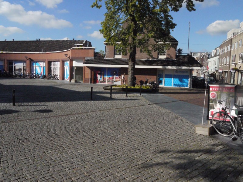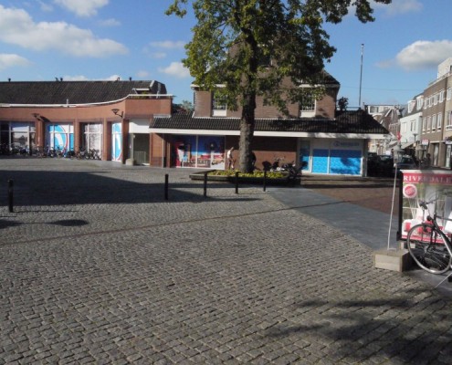 In het centrum van Boskoop wordt het reeds gesloopte bankgebouw vervangen door appartementen met winkels.