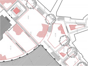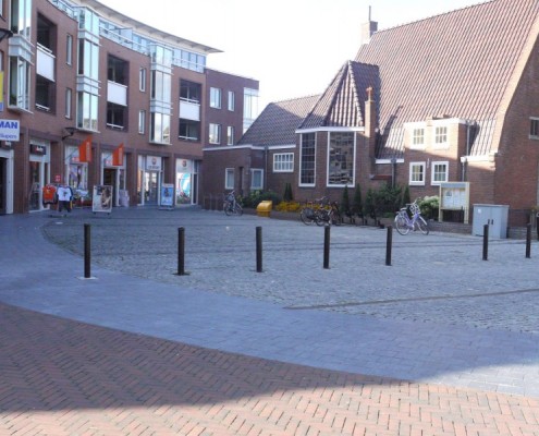 Samen met de verbouwing van de aanwezige supermarkt ontstaat een ovaal plein rondom het kerkje.
