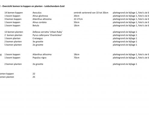 Voor een kapvergunning worden foto’s gemaakt, maten opgenomen en verwerkt op een lijst met locaties en reden waarom kap nodig is.
