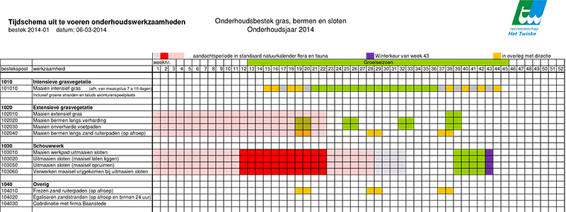 Opstellen van het onderhoudsbestek voor gras/bermen en sloten in het