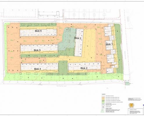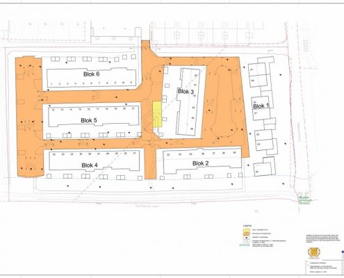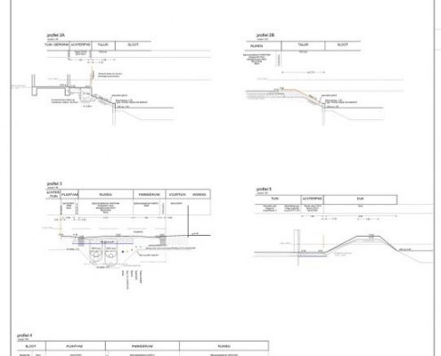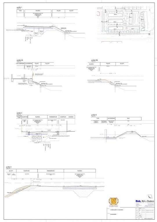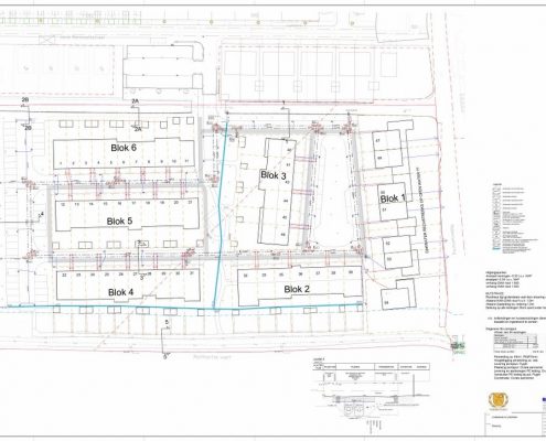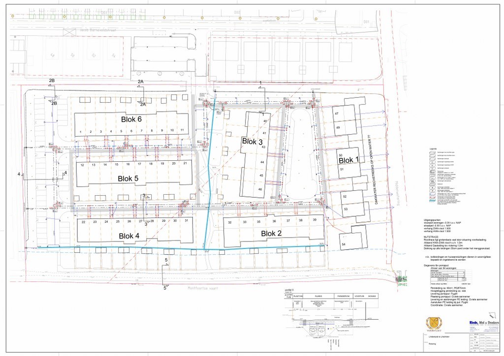 De eindzetting is gemeten en in kaart gebracht. De bouwkuipen zijn uitgezet, de bouwwegen staan aangegeven en de tekeningen voor riolering en uitvoering met details liggen klaar.