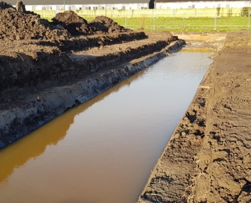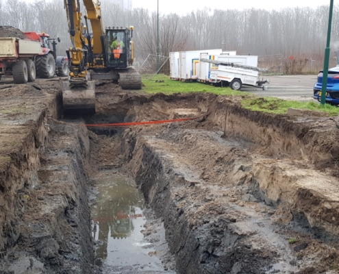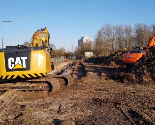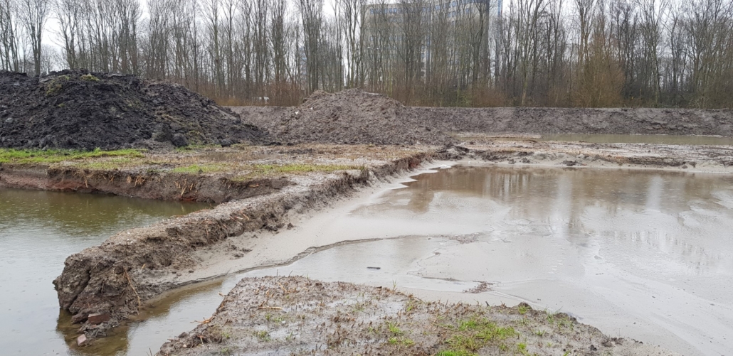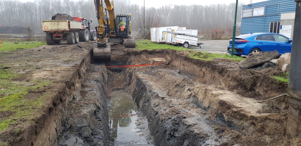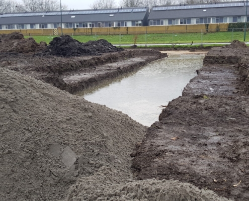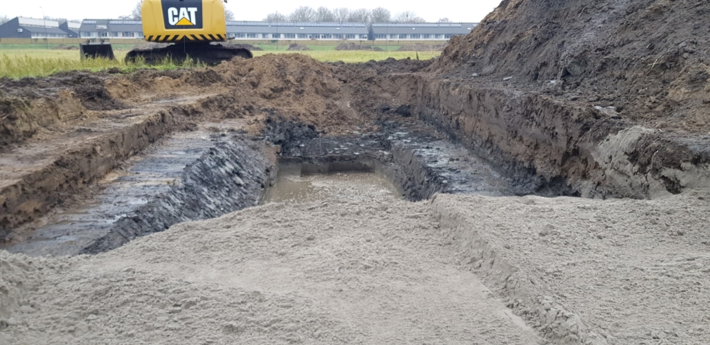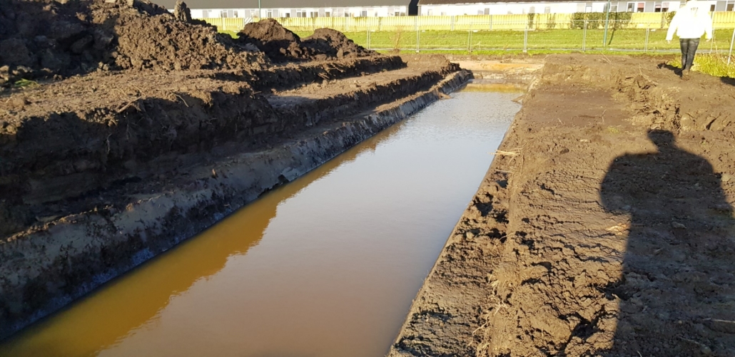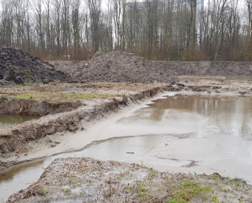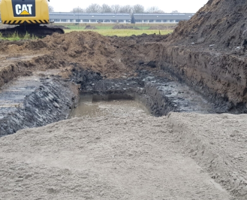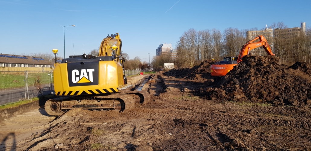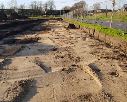 Allereerst is een hoogtemeting van het terrein gedaan.