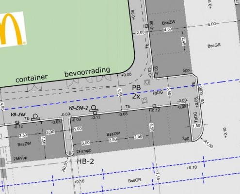 Voor deze nieuwe locatie met onder meer een Drive-lane, parkeerplaats en hellingbaan is de civiel technische voorbereiding door ons verzorgd. Extra uitdaging dan wel beperking zijn de aanwezigheid van watertransportleiding en hoogspanningstracé.
