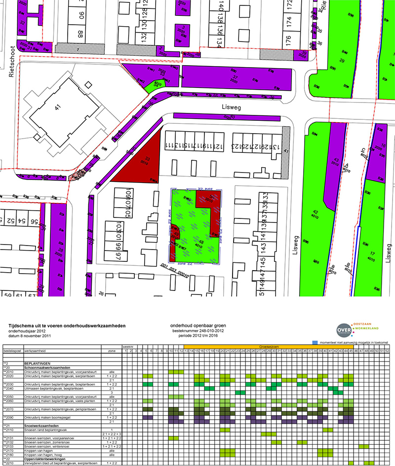 Voor de gemeentelijke samenwerkings-organisatie van de gemeente Oostzaan en Wormerland is een nieuw RAW-bestek geschreven voor het groenonderhoud. Voorheen hadden beide gemeenten eigen werkomschrijvingen / bestekken, nu is dit samengevoegd in één gezamenlijk bestek gesplitst in twee percelen, per gemeente. Het bestek is een volledig frequentiebestek, voor een contract- periode van 2012 tot en met 2016.