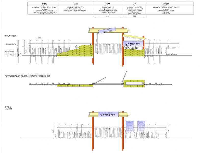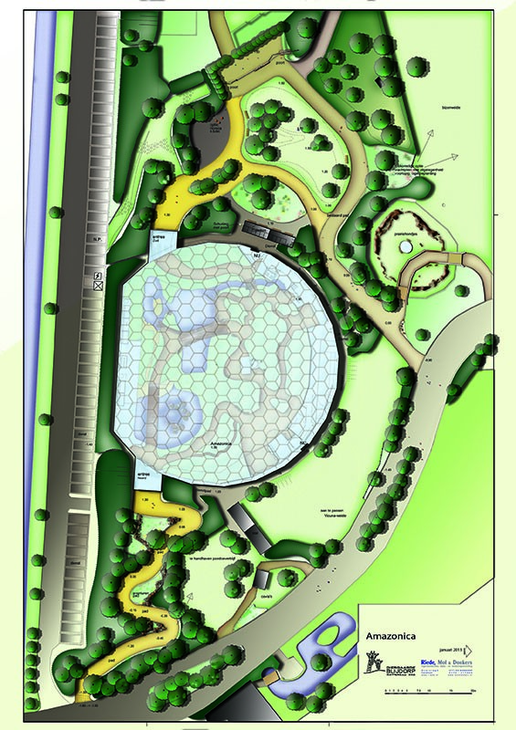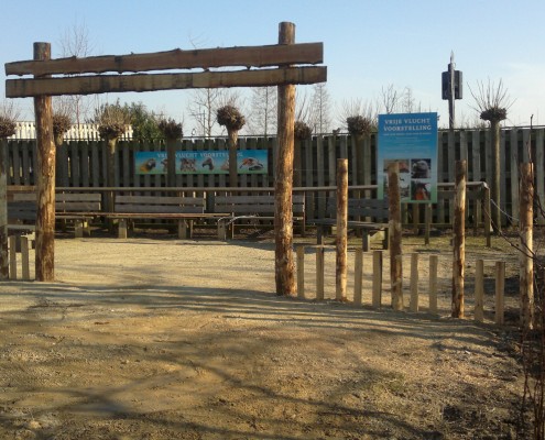 Aan de zuidzijde van de vlinderkas komen toiletten en eventueel een horeca-uitgiftepunt. Een grasveld voor de poort naar de vogelshow-locatie dient als speel-/wachtgebied.