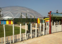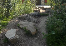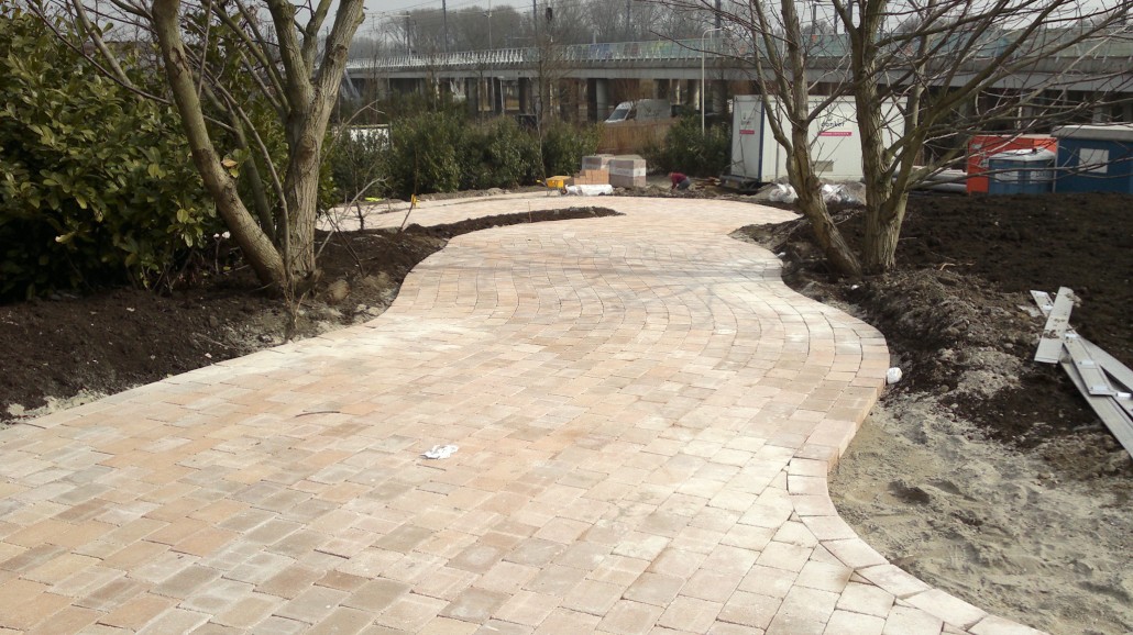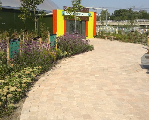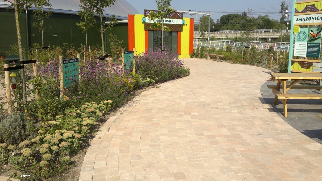 Het hoogteverschil tussen vloerpeil van de dôme en het peil van de hoofdroute is groot, waardoor het verbindingspad veel meters moet maken om een aanvaardbare helling te hebben. Het pad slingert dan ook tussen beide genoemde elementen. Voor de kinderen zijn er doorsteken met grote keien gepland.