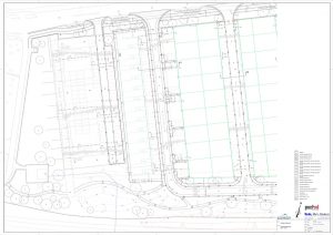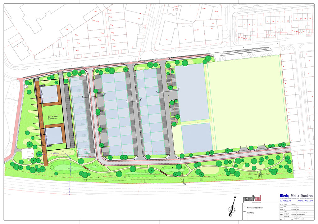 Na goedkeuring van het definitieve ontwerp voor Santfort (gemeente Zandvoort) hebben we diverse uitvoeringstekeningen opgesteld. De uitvoeringstekening met maten en peilen, rioleringsplan.